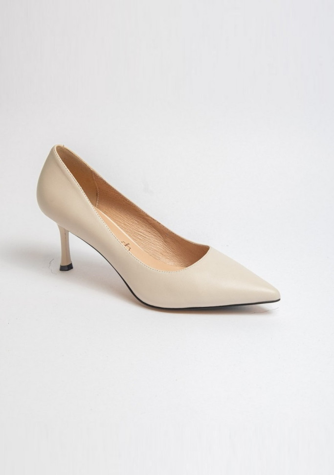 Бежевые туфельки на устойчивом каблучке 7 см из натуральной кожи