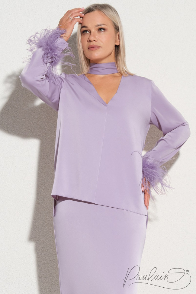 Добавить в избранноеЗапись на примеркуНежный шелковый комплект со съемными перьями на рукавах